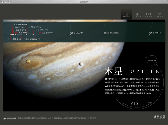 「JSTバーチャル科学館」のホームページ内にある「惑星の旅」というサイト、