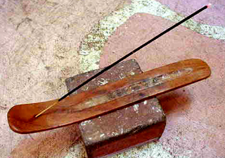 一息ついた後に必ずスティックタイプの「お香」に着火。