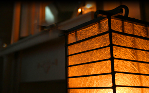友達お手製のジャパニな照明。和紙から透けたオレンジの灯りが良い感じ。